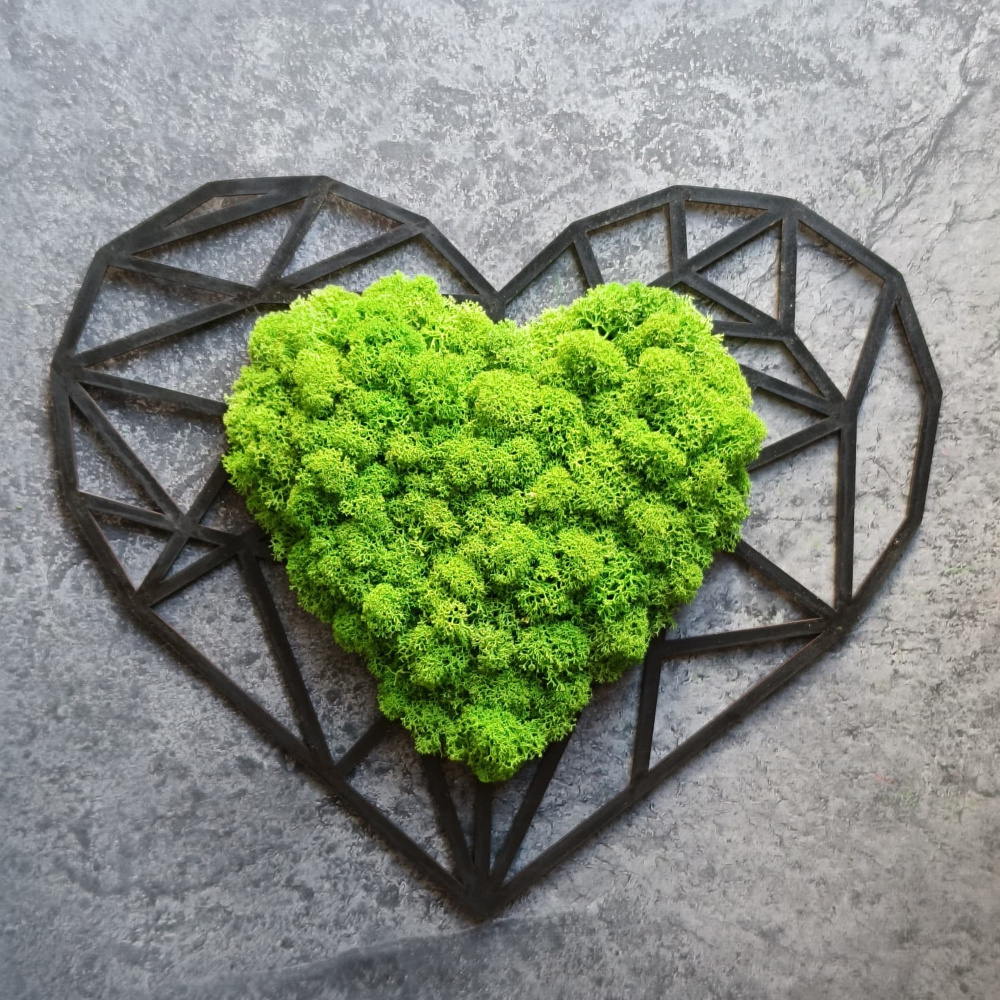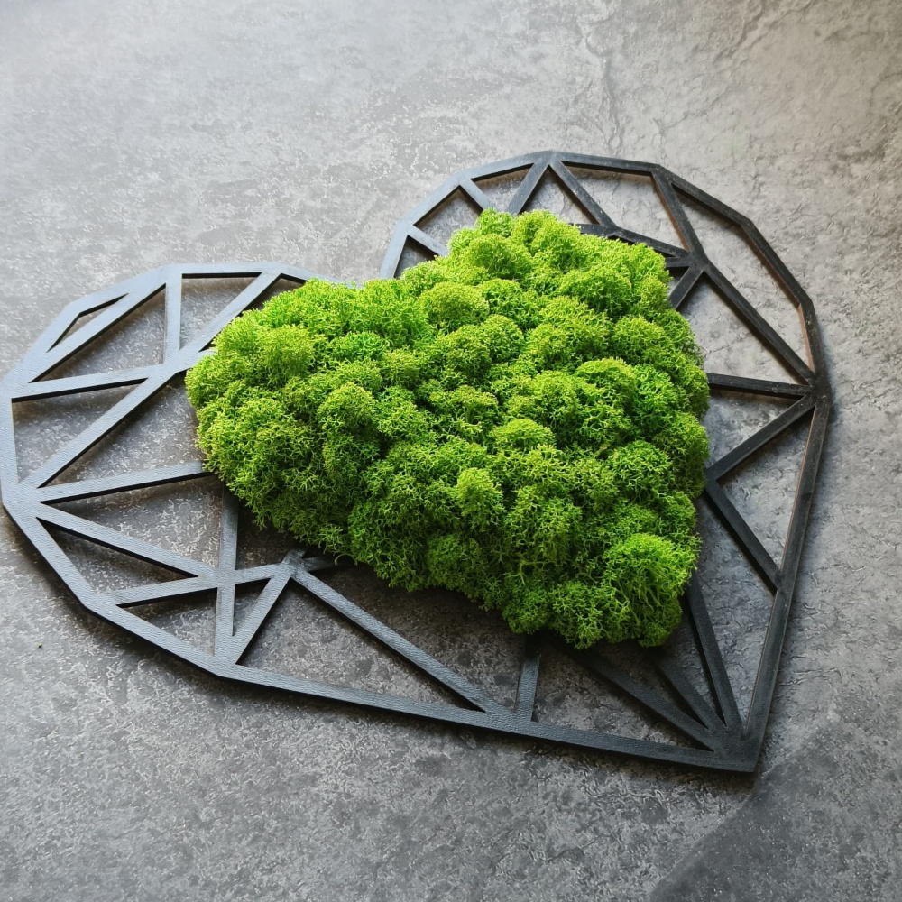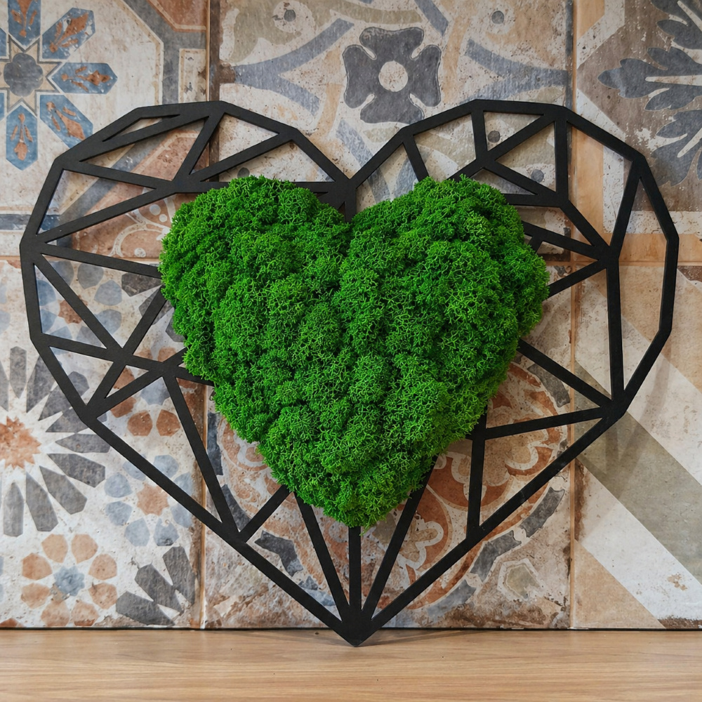 Obraz w kształcie serca z chrobotkiem reniferowym to połączenie naturalnego piękna i nowoczesnej dekoracji. To nie tylko ozdoba – to radosny akcent natury, który przyciąga wzrok i buduje klimat wnętrza.