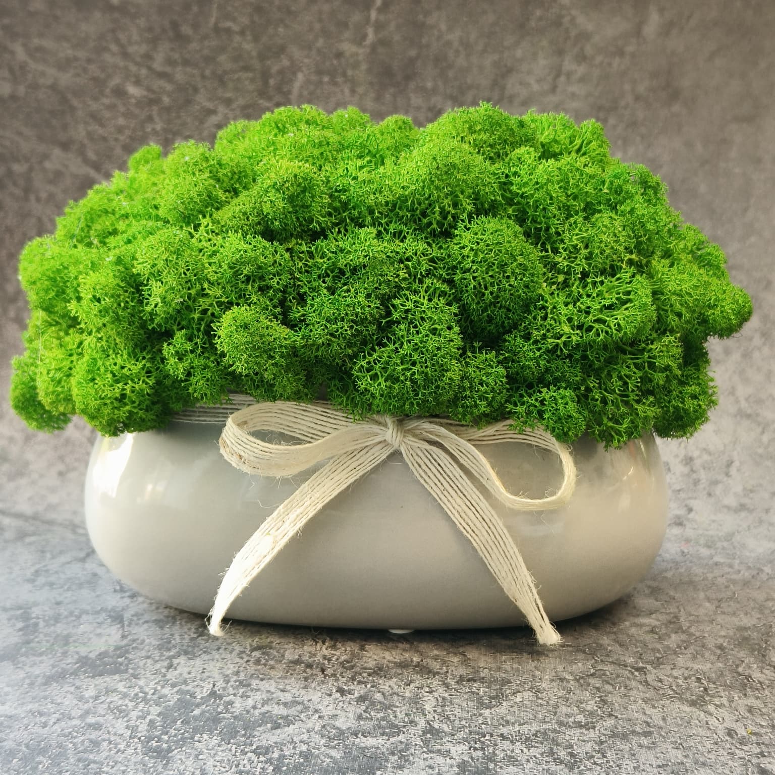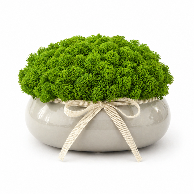 Doniczka z kokardką i chrobotkiem reniferowym to oryginalny wybór, który sprawdzi się w każdym domu, biurze czy jako prezent dla bliskiej osoby. Wprowadź naturę do swojego wnętrza! 🌿